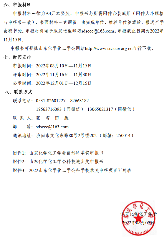 關于申報2022年度山東化學化工學會科學技術獎的通知
