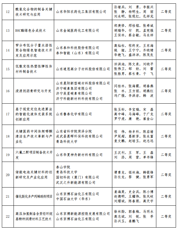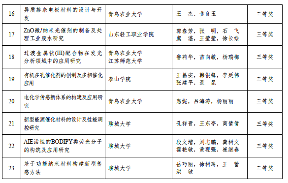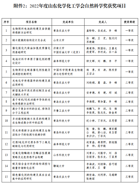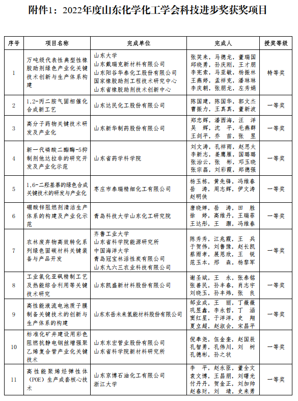 關(guān)于公布2022年度山東化學(xué)化工學(xué)會(huì)科學(xué)技術(shù)獎(jiǎng)獲獎(jiǎng)項(xiàng)目的公告