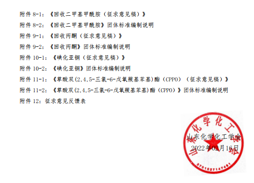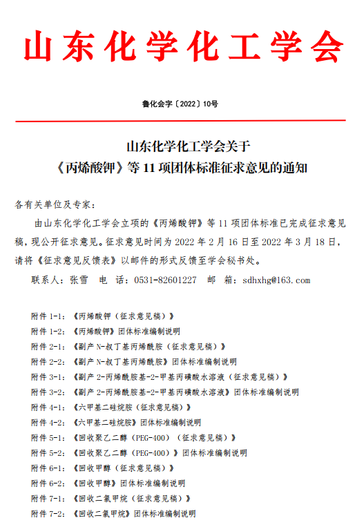 山東化學化工學會關于《丙烯酸鉀》等11項團體標準征求意見的通知