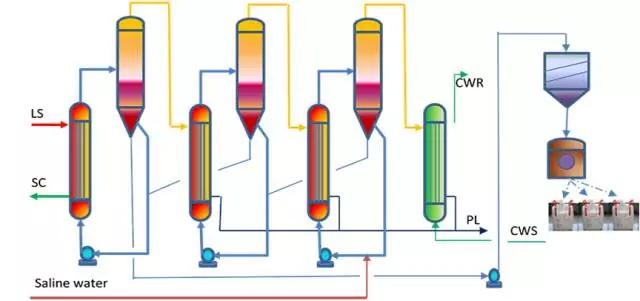 ?蒸發系統總耗汽量是普通蒸發裝置的1/3,運行總功率是傳統蒸發裝置的1/3;