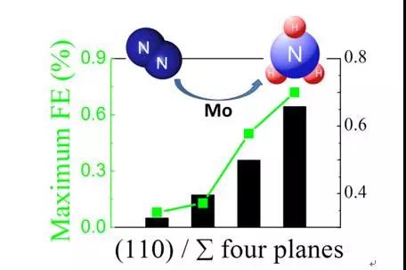 圖2. 不同晶面擇優(yōu)取向Mo基催化劑在不同電壓下的法拉第效率(a)和產(chǎn)氨速率(b)