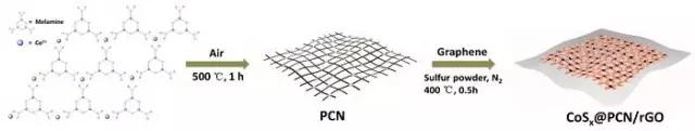 近日,中佛羅里達大學的Wenhan Niu博士和Yang Yang教授等人在Advanced Energy Materials上發表題為“Surface-Modified Porous Carbon Nitride Composites as Highly Efficient Electrocatalyst for Zn-Air Batteries”的文章。該文章報道了一種利用自上而下的合成方法制備出非晶CoSx納米顆粒修飾的多孔g-C3N4催化劑并將其應用于電催化和金屬空氣電池中。首先他們通過在高溫氧氣刻蝕的方法合成出具有網狀結構的g-C3N4,然后通過進一步將g-C3N4與石墨烯混合,硫化等步驟制備出非晶CoSx修飾的g-C3N4催化劑。其中網狀結構能夠為g-C3N4提供較大的表面積以及反應分子傳輸通道,同時CoSx在最大程度上提高的g-C3N4表面的導電性并且實現了g-C3N4在ORR和OER中的雙功能催化作用。通過電化學測試,這種多孔結構的g-C3N4催化劑表現出優異的電催化活性以及電池循環性能,其表現甚至優于商業的RuO2, Pt/C等貴金屬催化劑。