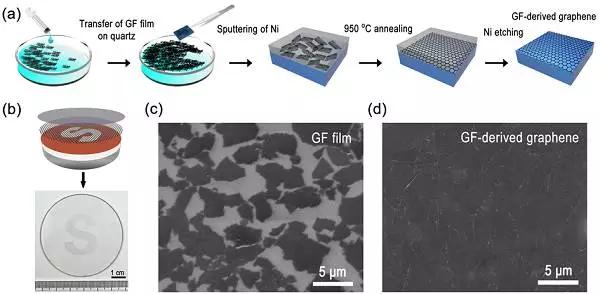 (a) 石墨烯納米片結構缺陷修復與邊緣生長高質量石墨烯薄膜示意圖