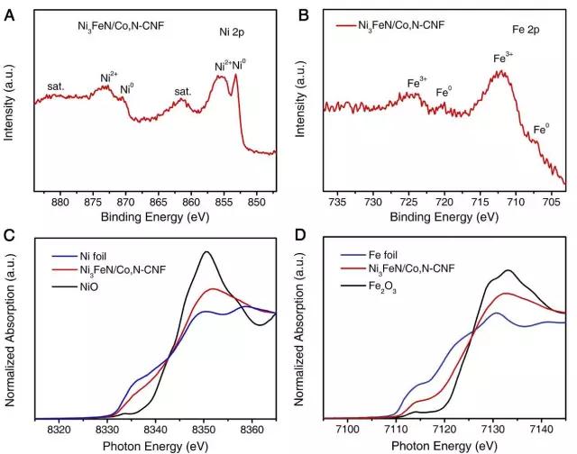 (C) Ni3FeN/Co,N-CNF及對(duì)比樣的Ni XANES圖譜;