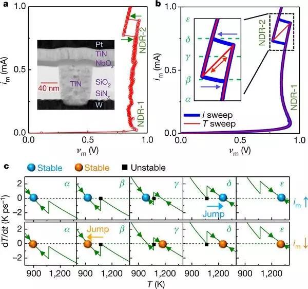 美國惠普實驗室Suhas Kumar和R. Stanley Williams(共同通訊作者)等人報道了納米級NbO2莫特憶阻器同時顯示出非線性激勵電流控制的負阻和可以用作電子開關的莫特晶體管驅動溫度控制的金屬-絕緣體轉換的特性。將這種憶阻器并入Hopfield計算網絡可大幅度提高對復雜問題處理的計算效率和準確性。