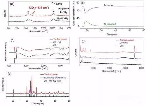 (a)液氨中合成LiO2的現(xiàn)場拉曼光譜數(shù)據(jù)