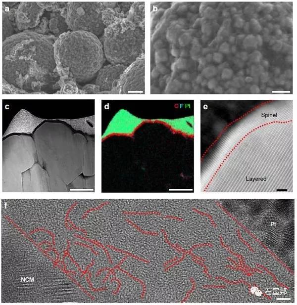 f) NCM表面的TEM圖。