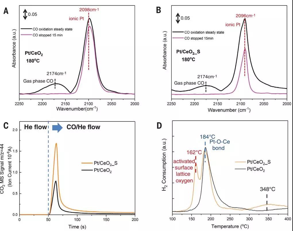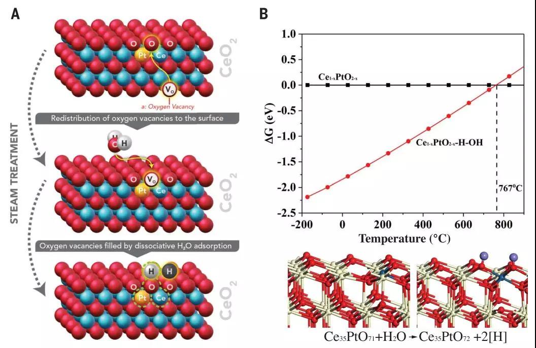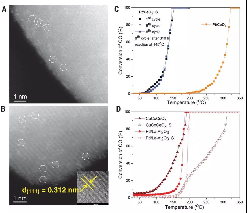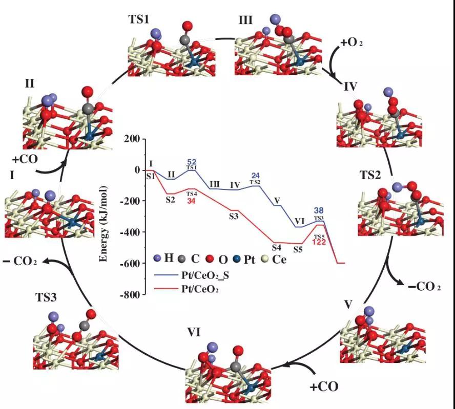 單原子Pt/CeO2的表面晶格氧用于CO的低溫氧化