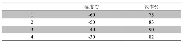 由表可見,隨著反應溫度的升高,反應收率先升高后降低,可能是因為低溫時反應不完全,導致反應收率低,而溫度過高后,反應的副產物增多,導致反應收率下降。