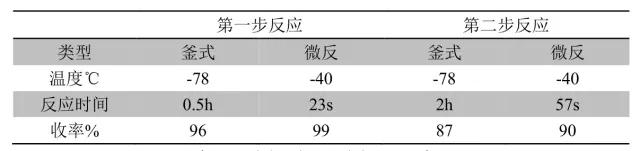 表三 微反應器與釜式反應器結果對比