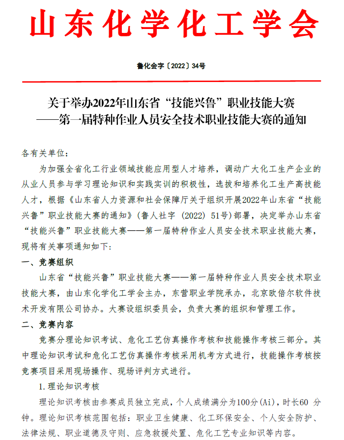 關于舉辦2022年山東省“技能興魯”職業技能大賽——第一屆特種作業人員安全技術職業技能大賽的通知