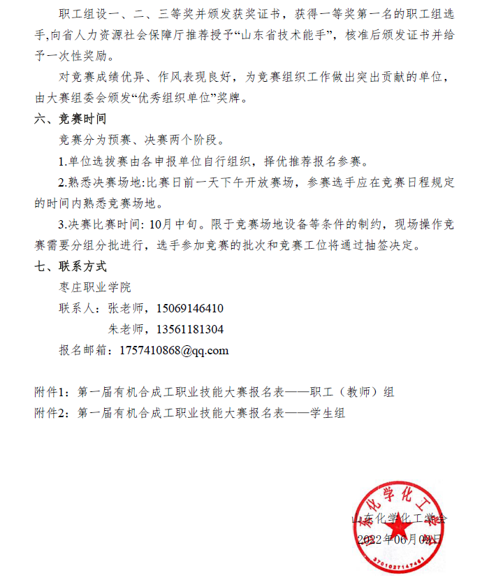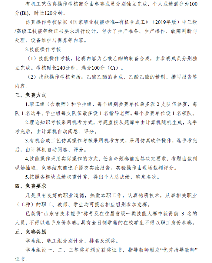 關于舉辦2022年山東省“技能興魯”職業(yè)技能大賽——第一屆有機合成工職業(yè)技能大賽的通知
