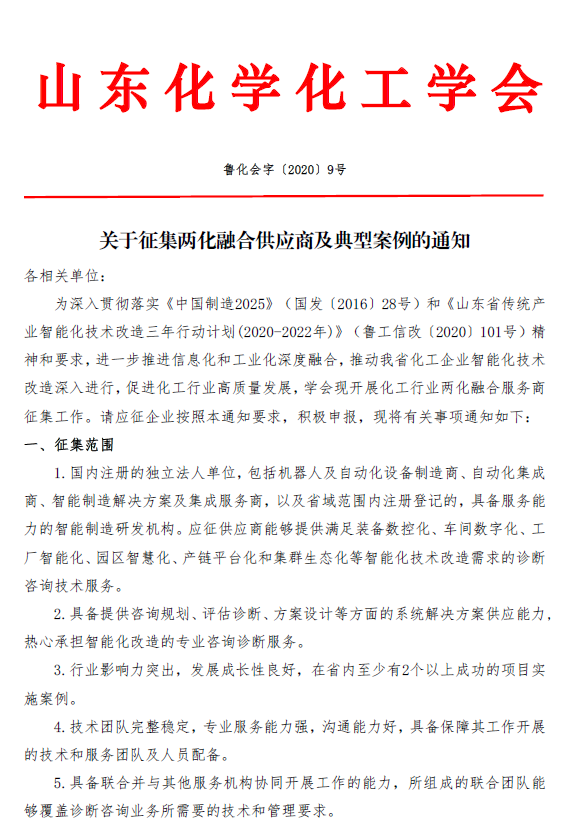 關于征集兩化融合供應商及典型案例的通知