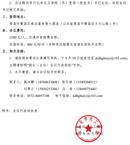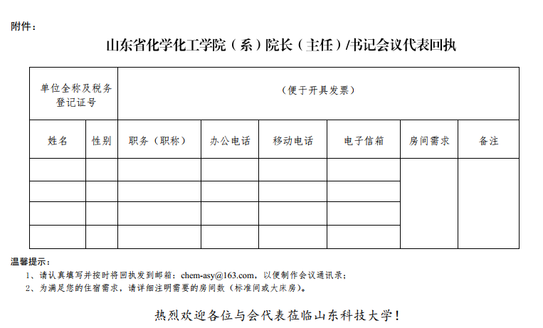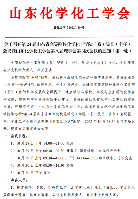 第24屆山東省高等院校化學化工學院(系)院長(主任)會議通知(第一輪)