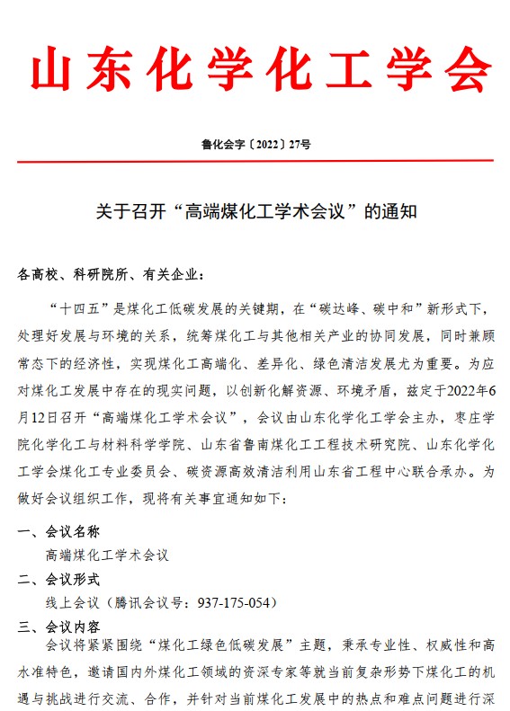 關(guān)于召開“高端煤化工學(xué)術(shù)會議” 的通知